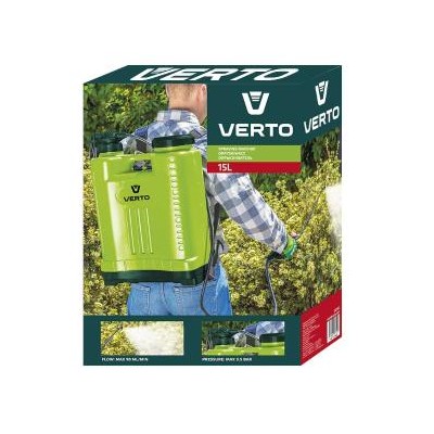 Pulverizator de presiune VERTO, cu o capacitate de 15 litri. Presiune de lucru 2,5 - 3,5 bar. Gatul larg faciliteaza umplerea cilindrului. Suruburile pentru suspendarea sprinklerului pe spate si blocarea fluxului sporesc confortul muncii. Pulverizatorul poate fi utilizat in intervalul de temperaturi cuprins intre 0 si + 45 ° C